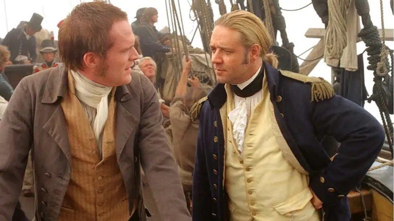 When I saw Master and Commander, Peter Weir’s fine adaptation of two of Patrick O’Brian’s novels, upon its initial release in 2003, it was an interesting time. Russell Crowe, who played the swashbuckling protagonist Captain Jack Aubrey, was at his peak as a film star, coming off the successes of Gladiator, The Insider and A Beautiful Mind, and he excell…